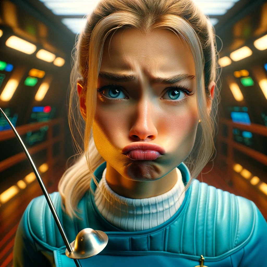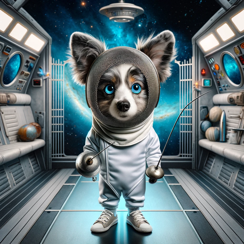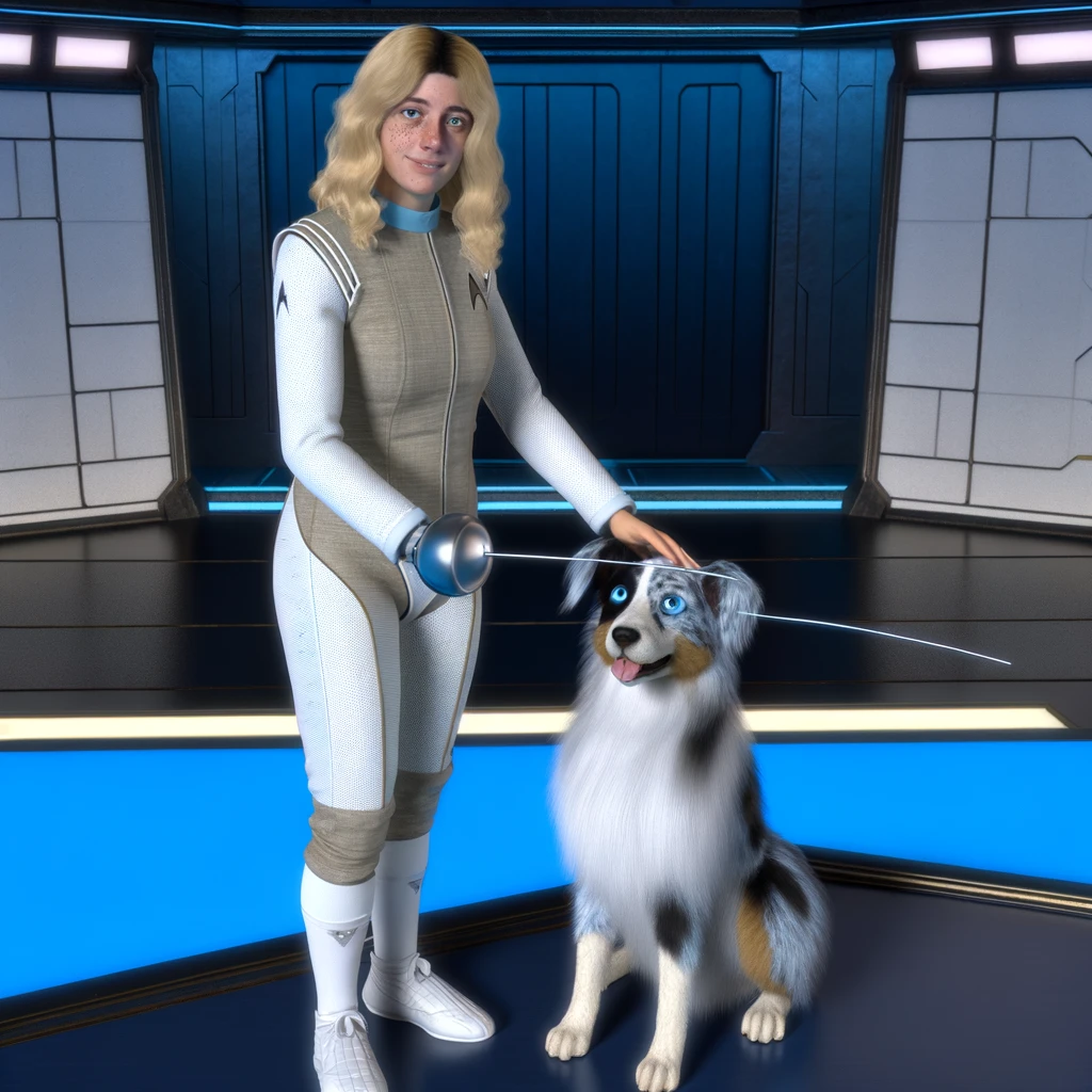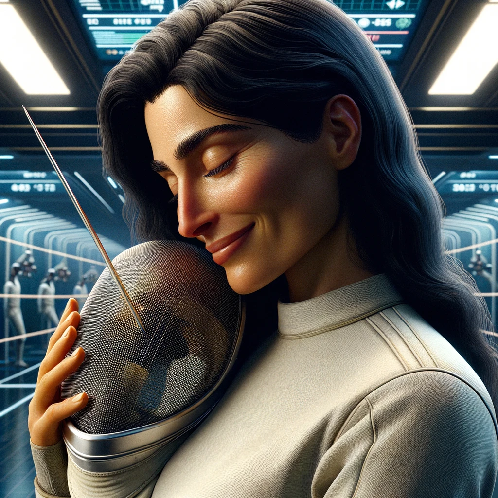 Amidst the backdrop of interstellar exploration aboard the Cosmic Galactic Cruiser, a unique spectacle of skill and grace unfolded on the Holodeck – the Foil Fencing Showcase. This event brought together two of the cruiser’s most adept fencers, EAH, the ship’s esteemed psychologist with a rich Persian heritage and a masterful command of the foil, and JKR, the young and spirited daughter of the commander, known for her agility and sharp strategic mind.