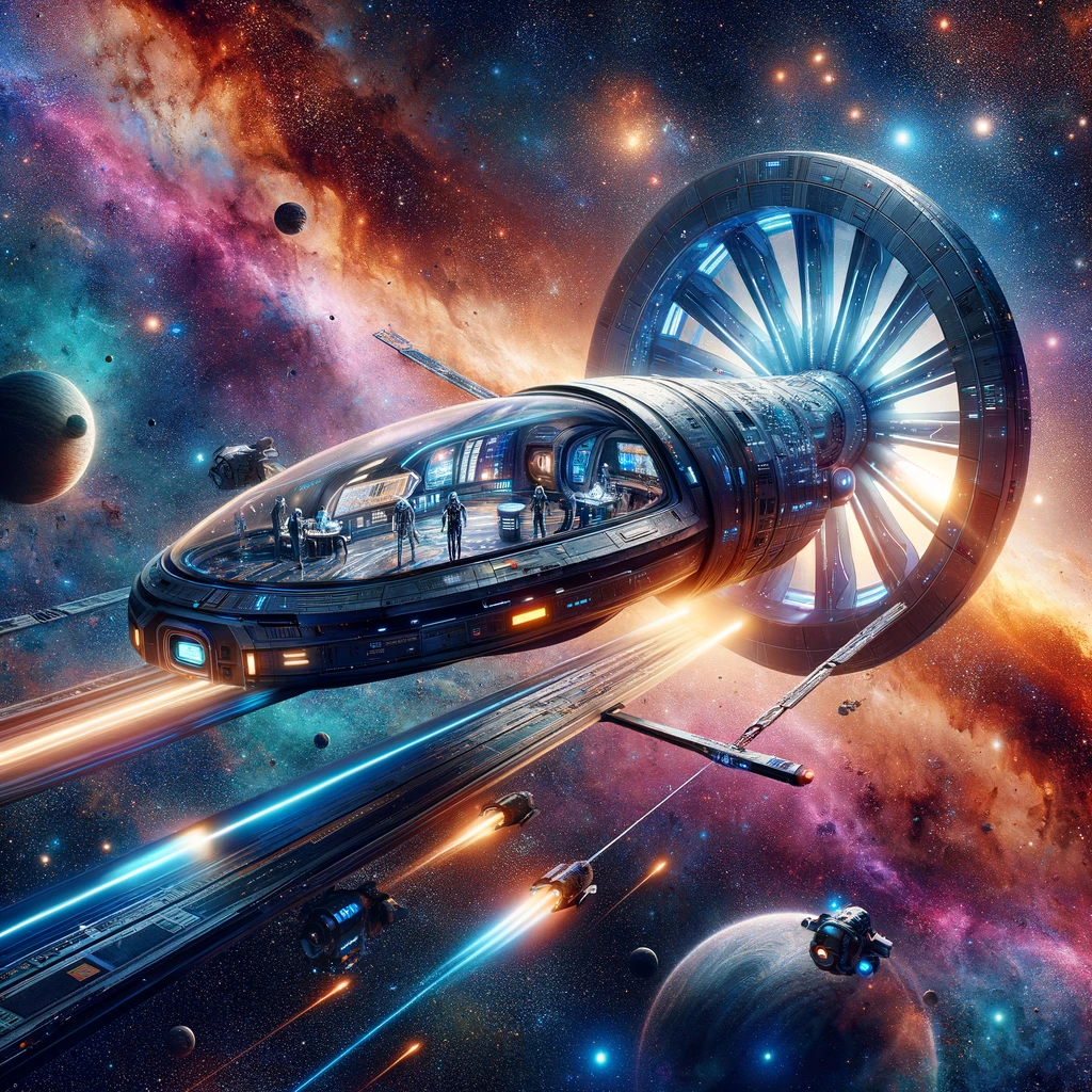 Technological Advancements: At the heart of this mission are technological marvels such as the Stellarator drive for propulsion and energy, the Tesla Generator for wireless energy transmission, and the innovative PVRM for sustainable energy and thermal management. The onboard Multispectrum Telescope and LEDA system offer unprecedented capabilities in celestial observation and analysis, while the advanced Holodeck and DSGIH projector facilitate both training and recreation, blending reality with virtual possibilities.